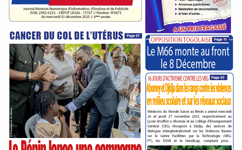 Médecins du Monde Suisse au Bénin a animé mercredi 26 et jeudi 27 novembre 2025, respectivement au Lycée Houffon à Abomey et au Collège d’Enseignement Général (CEG) Mougnon à Djidja, des séances de dialogue intergénérationnel sur les Violences Basées sur le Genre Facilitées par la Technologie (VBG-FT), les DSSR et le Handicap, comptant pour ses […]