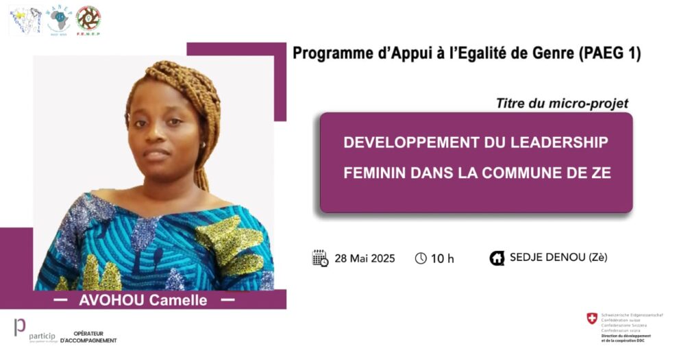 L’engagement d’AVOHOU Camelle pour l’émancipation des femmes est une fois de plus mis en lumière. Le mercredi 28 mai, à Sèdjè Dénou, elle organise une rencontre cruciale intitulée « Développement du leadership féminin dans la commune de Zè ». Cet événement, soutenu par le PAEG 1 (Programme d’Appui à l’Égalité de Genre), vise à transformer la réalité […]