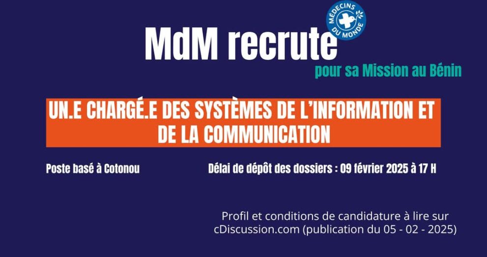 Dans le cadre du renforcement de son organisation interne, l’Union Nationale des Médias en Ligne du Bénin (UNaMEL-Bénin) a lancé un appel à candidatures pour le recrutement d’un(e) Secrétaire Exécutif(ve) et d’un(e) Secrétaire Comptable. Les personnes intéressées ont jusqu’au vendredi 30 avril 2025 pour soumettre leur dossier. L’Union Nationale des Médias en Ligne du Bénin […]